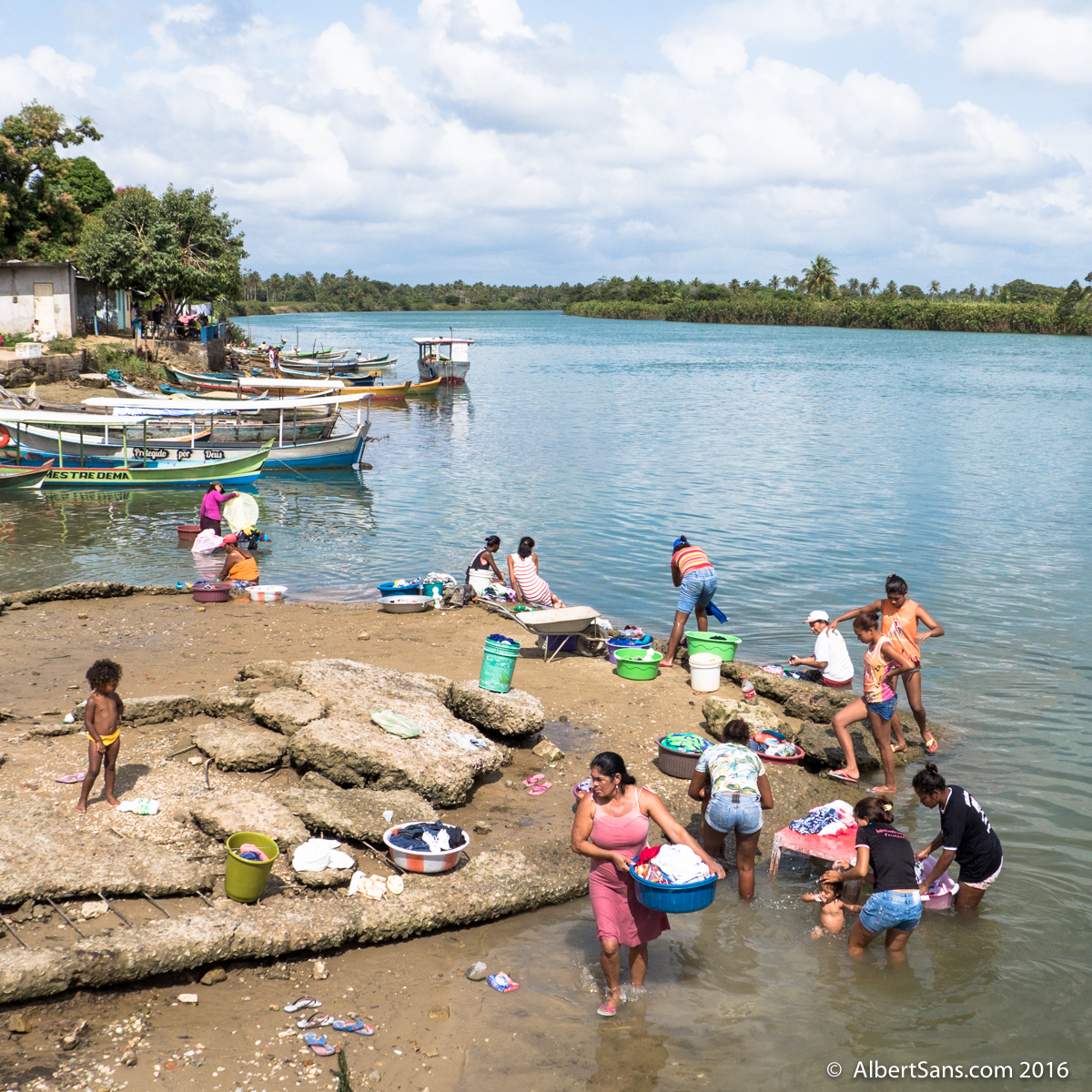 Una de esas barcas nos cruza a Ona y a mí, y algún vecino que echa una cabezada bajo el sombrero, hasta el otro lado del río. Concretamente al pueblo de Brejo Grande donde nos recibe la misma imagen de mujeres lavando la ropa en el río a pie de muelle.