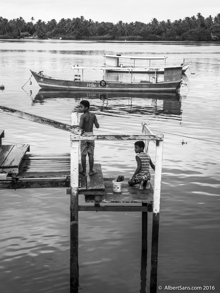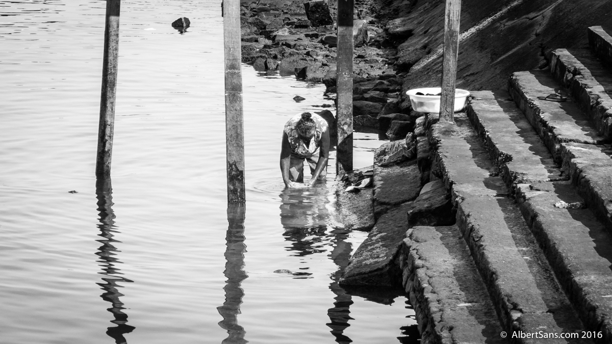Manso pero poderoso nos deja boquiabiertos a mí y a Ona cuando nos asomamos al muelle donde desde buena mañana las lavanderas trabajan duro y los chavales “muleques” pescan desde la orilla.