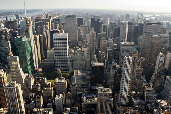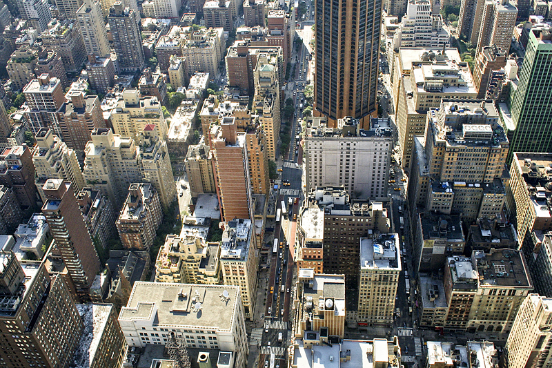 Pasear por Nueva York es como caminar por el vientre de un bosque en el que los árboles son de acero revestido por cristal y ladrillo. Moles inmensas que dejan ver la ciudad y que envuelven al viajero hasta hacerlo pasar desapercibido. No son enjambres como se dice habitualmente sino gigantes sin brazos lo que los hace más estilizados y vigilantes. Cuando uno llega a Nueva York tiene la sensación de ser observado. Desde alguna ventana iluminada, alguien espía los movimientos sonámbulos del visitante. Esta masa de líneas rectas revolucionó el panorama urbano y urbanístico de las ciudades.