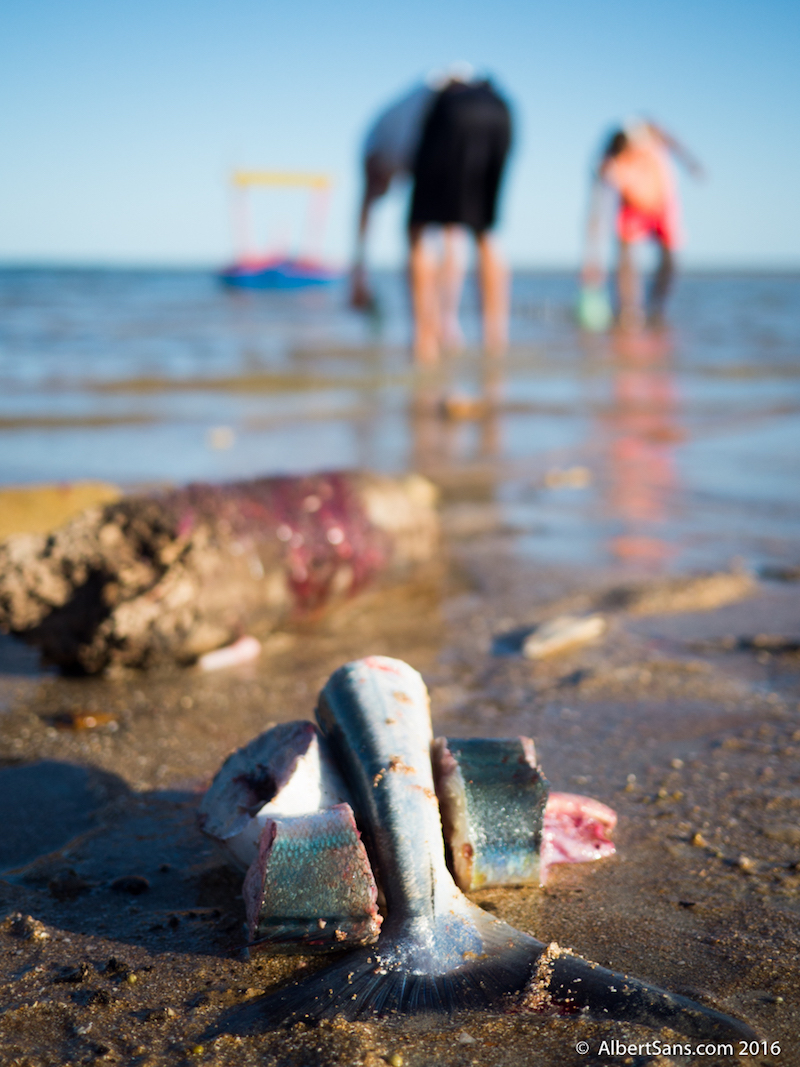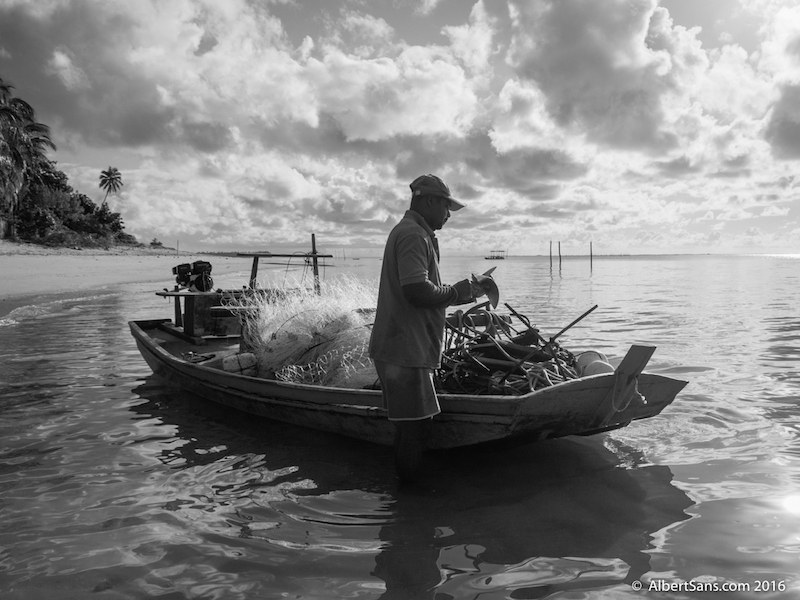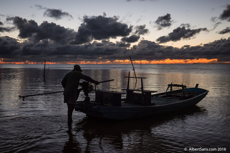 Me instalo en uno de los barracones que sirven para guardar las redes y otros cachivaches de pesca. Entre charlas curiosas, remiendos de redes, reparto del botín del día y la puesta de sol, lanzo las primeras fotos de las muchas que intuyo que caerán esos días.