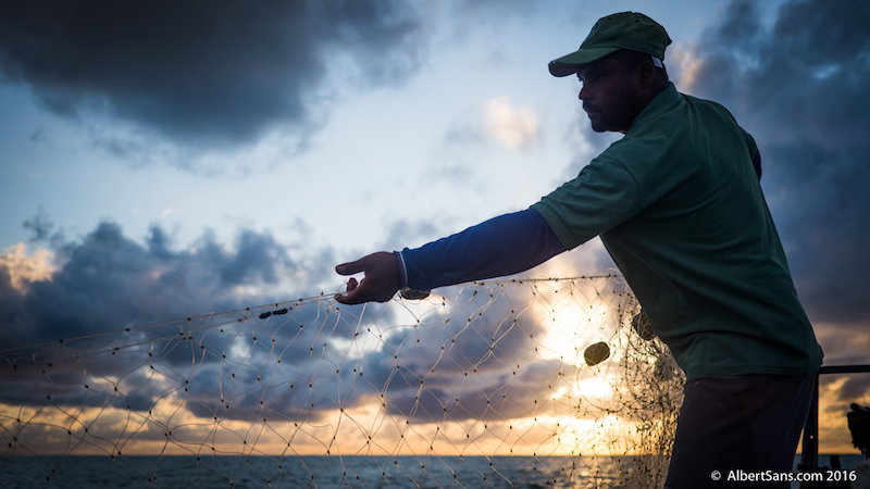Tras levantar y soltar un par de redes más y poca recompensa, el sol ya empieza a calentar sin complejos y las olas van creciendo haciéndonos surfear un poco en el camino de vuelta.