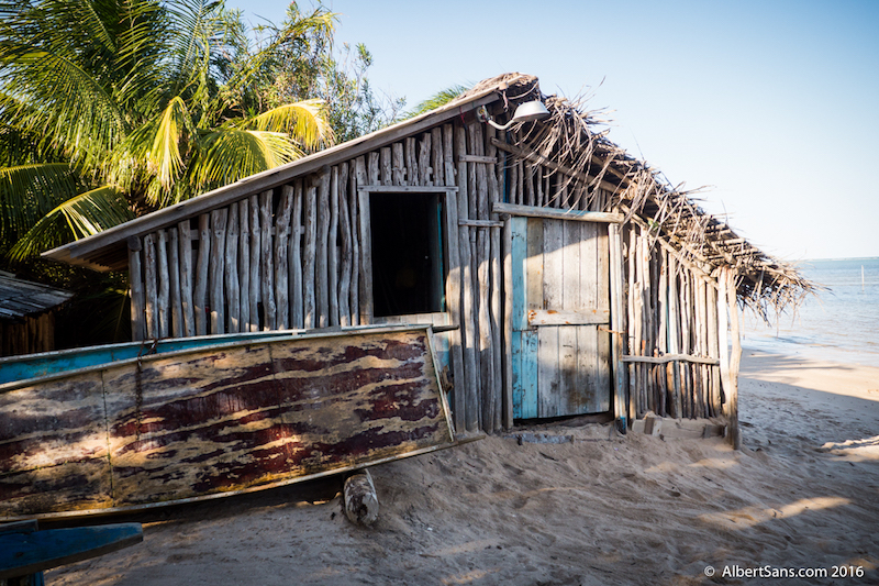 Tras serpentear un par de kilómetros de mato, llego a un claro cerca del rio donde encuentro a unos pescadores que no tardan en ofrecerme cobijo en una de sus barracas/almacén en la playa.