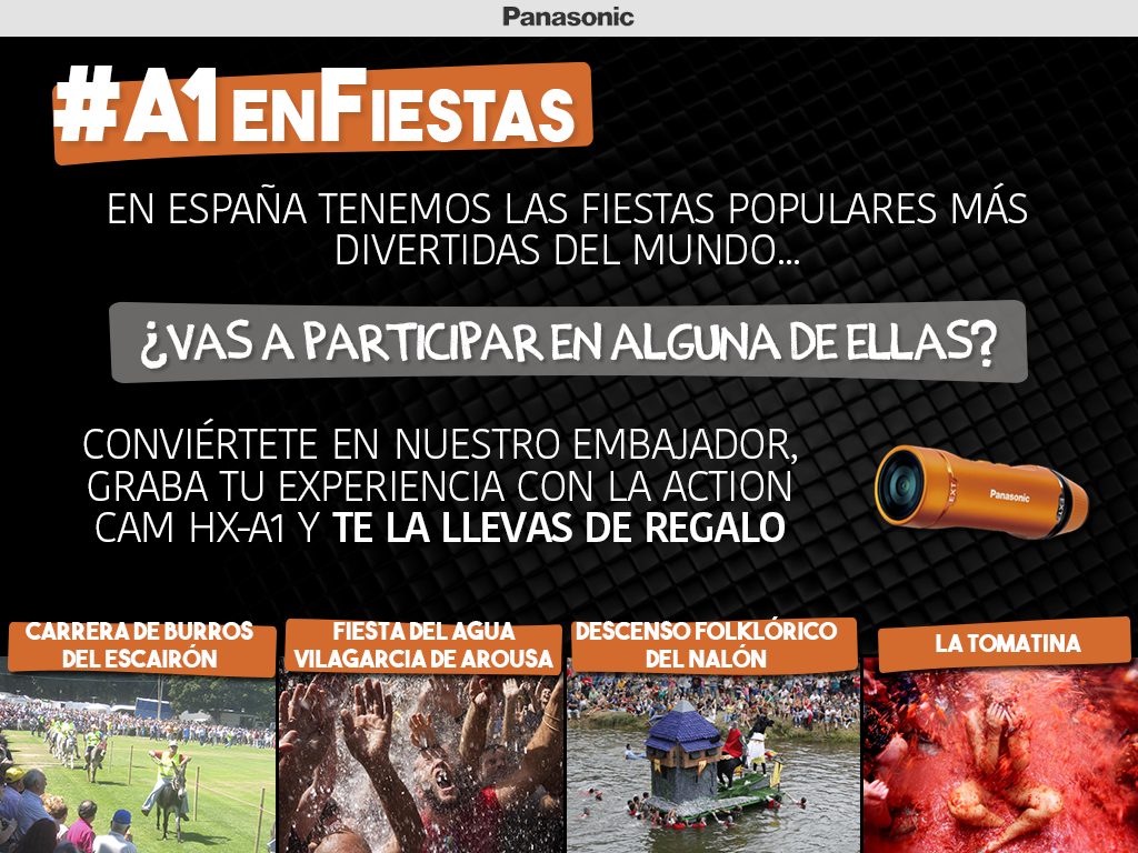 - Enviaremos a cada participante una camiseta Panasonic, una cámara HX-A1 con diadema y tarjeta SD para grabar la fiesta.